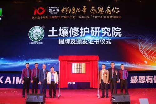 11月18日,以“辉煌十年,感恩有你”为主题的凯米瑞十周年庆典暨2017瑞丰生态“未来之星”VIP客户联盟财富峰会在广州召开。众多领导、行业顶级权威专家,农资渠道商约500余人共聚广州长隆酒店,见证了瑞丰生态公司“土壤修护研究院”的成立仪式和“中国农业科学院国家测土配方施肥中心实验室瑞丰生态工作站”的授牌。总结10年发展历程,庆典上解读下个十年的战略规划,最新爆品菌肥发布,受到参会人员的一致认可和好评,现场实现与经销商合作伙伴战略签约超过1.2亿元。